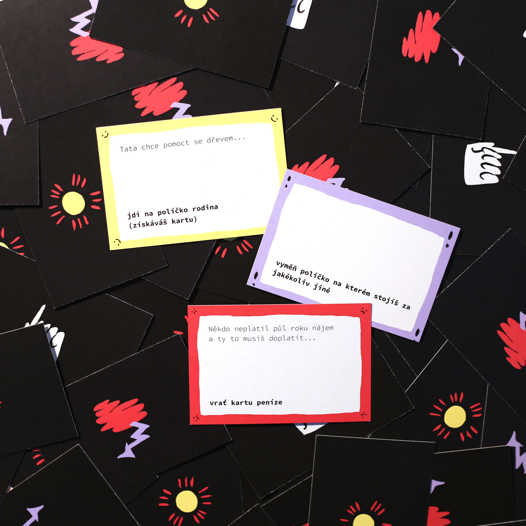 Design a ilustrace hry. Cílem hry je získat žetony "životních hodnot" - peněz, koníčků, rodiny a zdraví. Neztratit je a dostat se do cíle. Je tu ale ještě faktor štěstí a smůly.